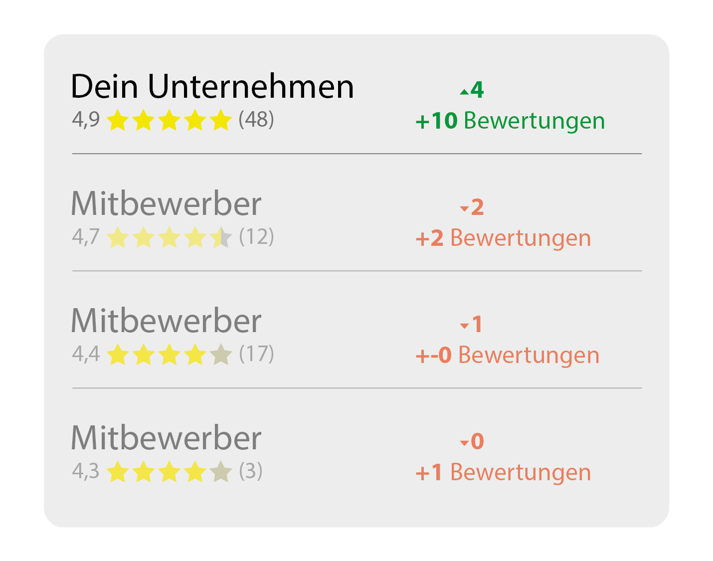 Weiterhin wirkt sich der Bewertungsscore auf den Google Algorithmus aus und lässt dein Unternehmen besser ranken. Das führt zu mehr Traffic was wiederum zu mehr Kunden führt