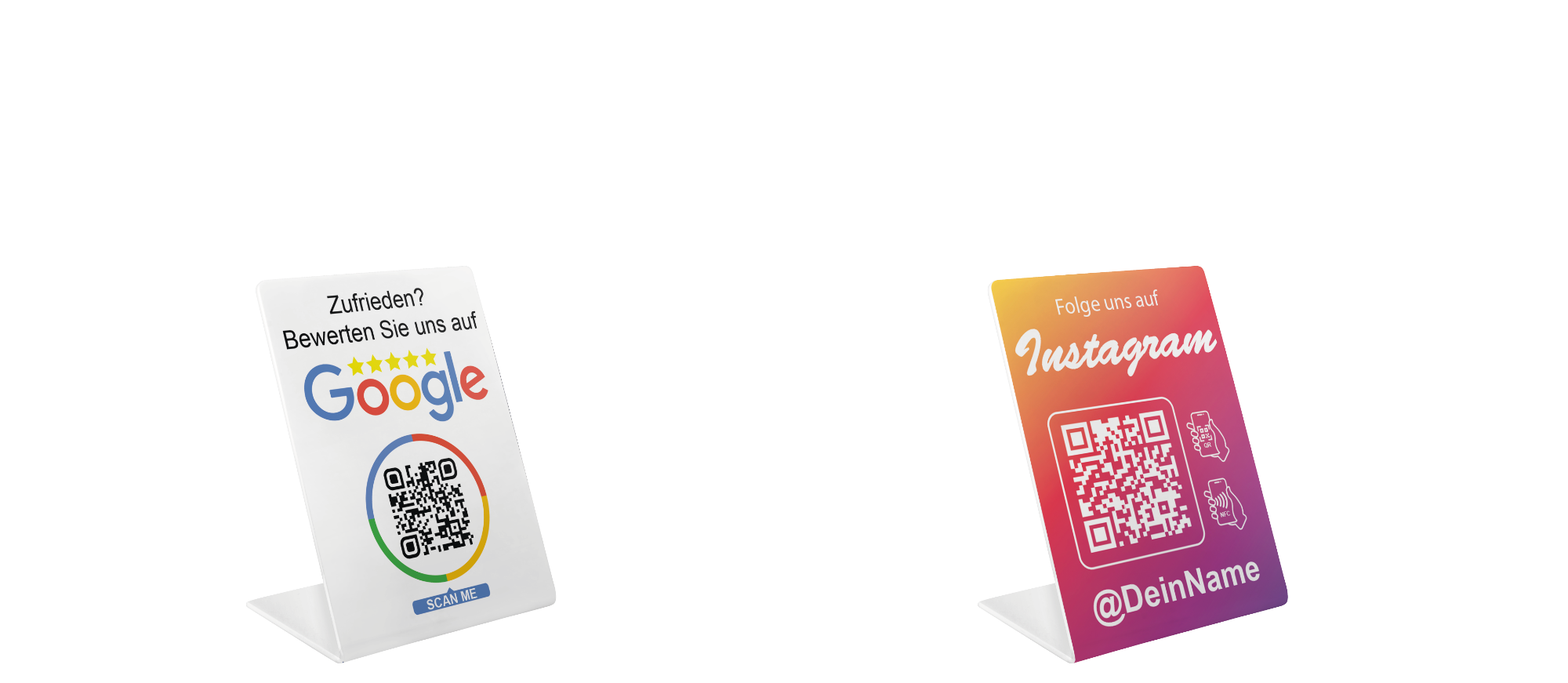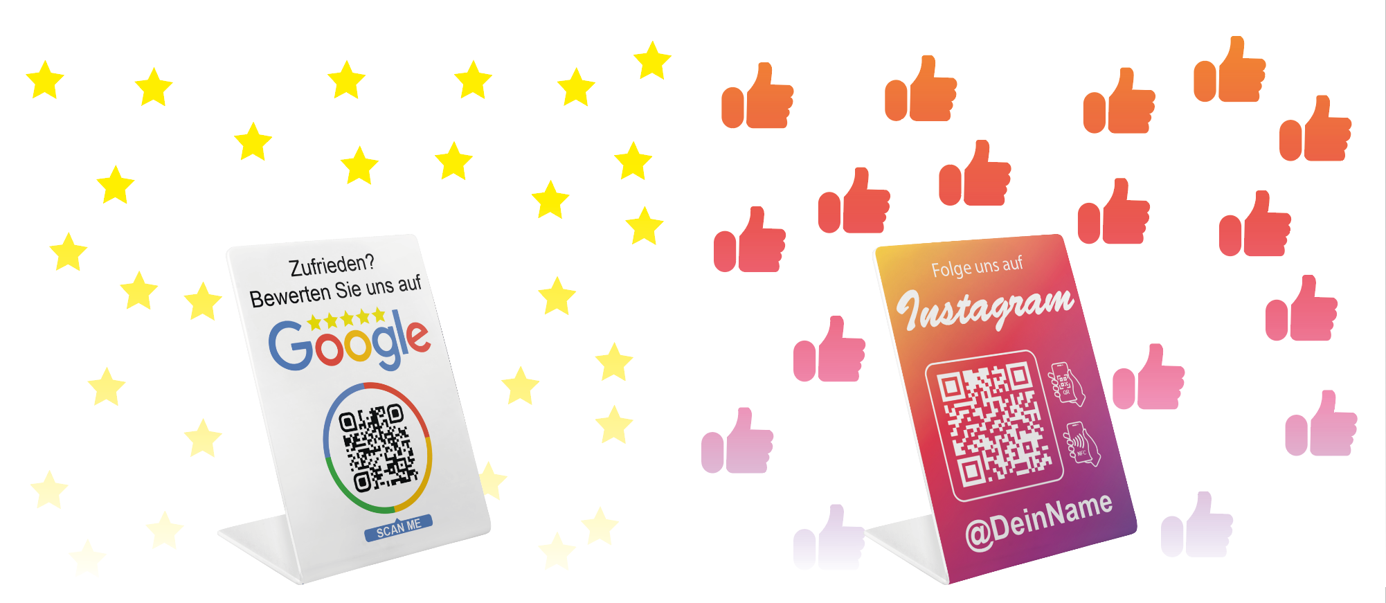 - Professionelles Branding – Ein Aufsteller zeigt, dass das Unternehmen auf Social Media aktiv ist.